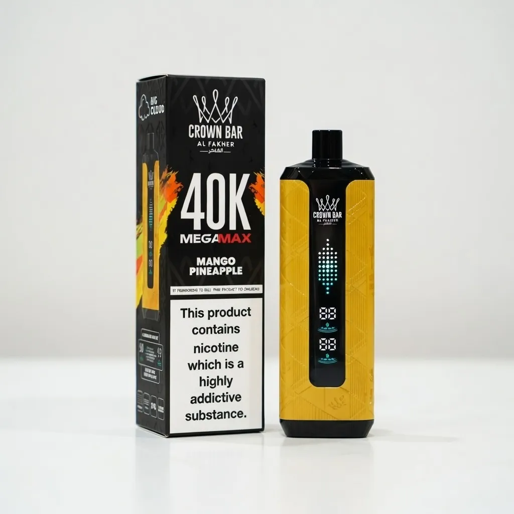 The Type-C charging port adds convenience, and the 5mg/ml nicotine strength delivers a satisfying hit. Elevate your vaping game in style with the Al Fakher 40,000 Puffs Crown Bar in the vibrant city of Dubai.