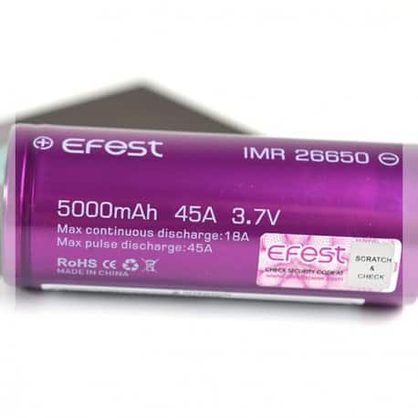 The Purple 26650 mAh 45A is made by Efest.