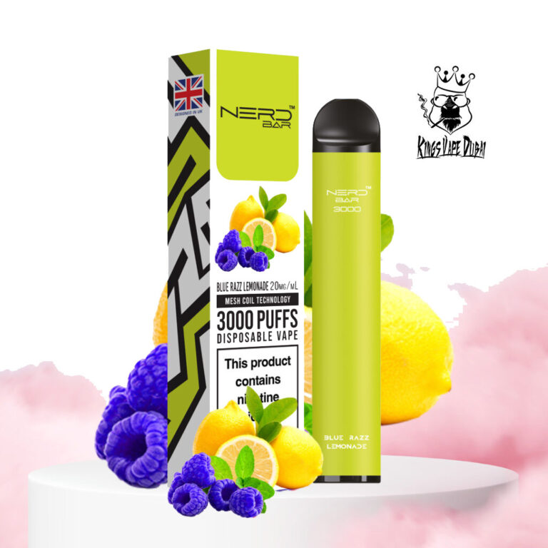 This NERD BAR Blue Razz Lemonade can vape up to 3000 puffs. Pre-loaded with 8ml of our award- winning e-liquids. Pre-charged pure cobalt 1000mah battery. Ready to use instantly right out of the box available at king vape dubai store.