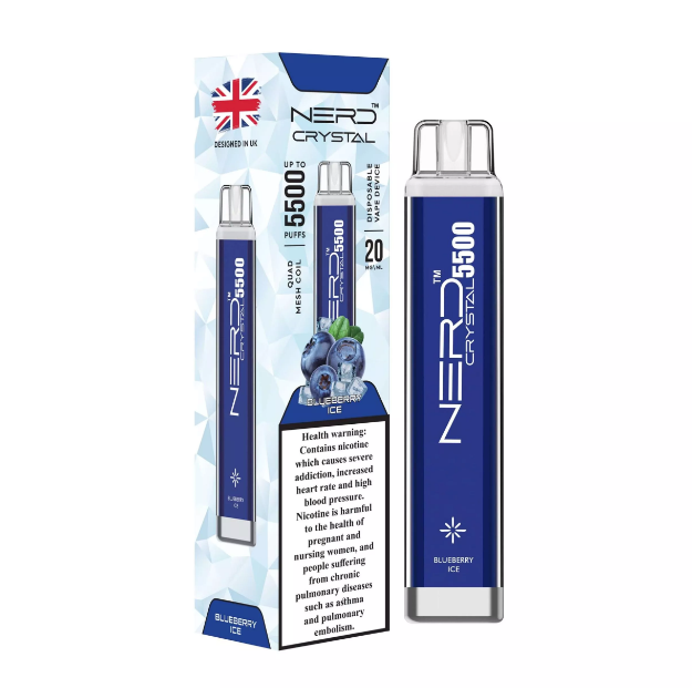 This NERD Crystal Blueberry Ice can vape up to 5500 puffs. Pre-loaded with 12ml of our award- winning e-liquids. Pre-charged pure cobalt battery. Ready to use instantly right out of the box available at king vape dubai store.