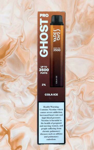 Vapes Bar Ghost Pro Vapes Bar Ghost Pro Cola Ice 3500pfs 3500pfs is compact and comfortable mouthpiece with a medium-tight draw ensures smooth yet powerful hits without any throat irritation and elegant feel and is designed to providing a satisfying cloud of flavor-saturated goodness with a 650mah rechargeable battery for long lasting use something our customers love.Ghost Pro is the newest disposable from the Vapes bar which lasts longer and with stylish design and All flavors available at king vape dubai.